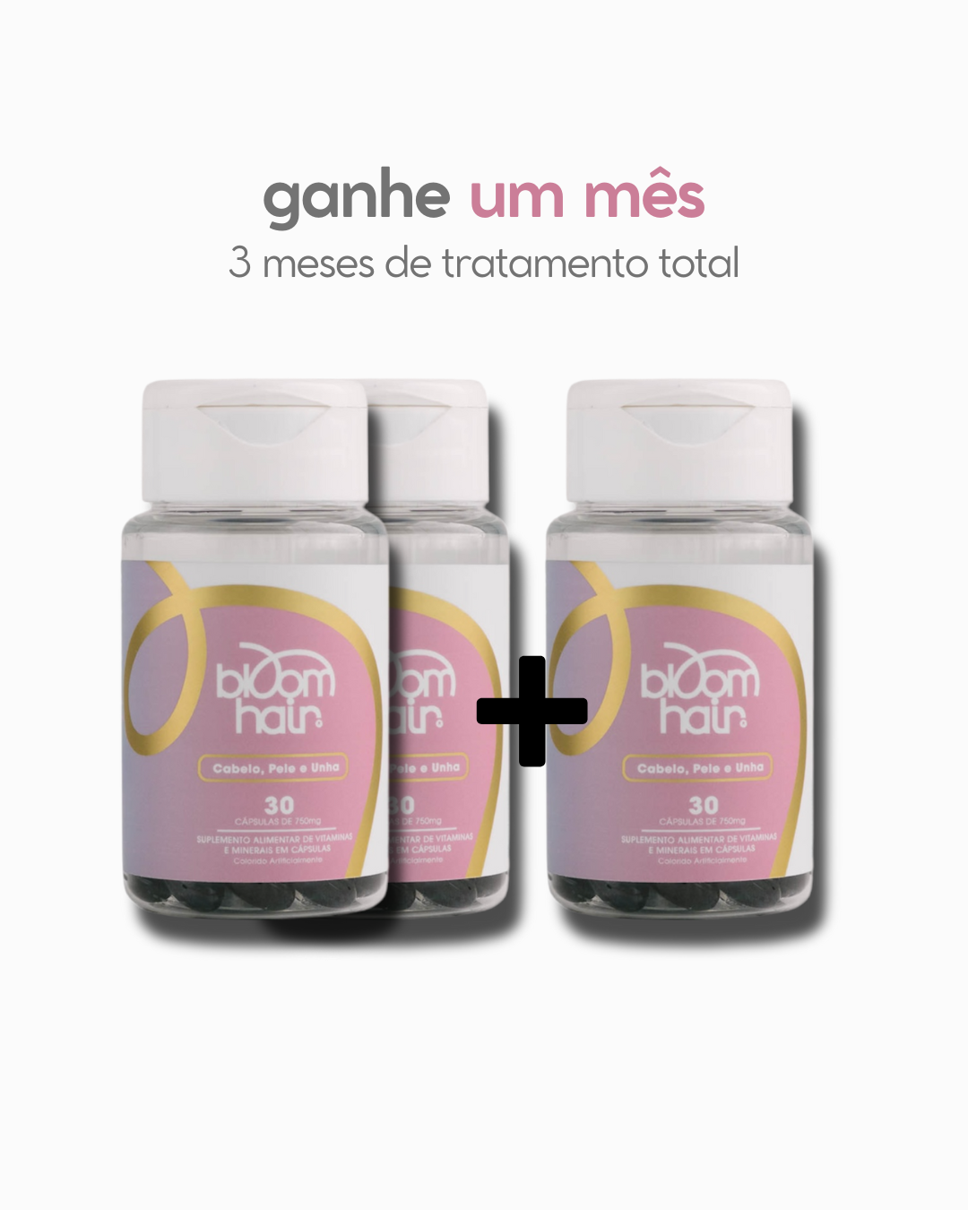 Você já imaginou ter cabelos deslumbrantes, fortes e cheios de vida? Agora, isso é possível com Bloom Hair! Nossas cápsulas de vitaminas e minerais foram especialmente formuladas para combater a queda capilar, fortalecer os fios e estimular um crescimento saudável.